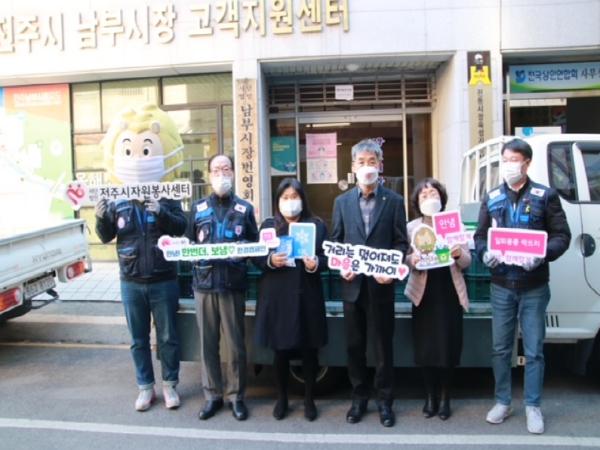 이날 전주시자원봉사센터는 남부시장을 찾은 방문객들을 대상으로 손 스프레이와 보습제 등을 나눠주면서 코로나19 예방에 긴장을 늦추지 말자는 방역 캠페인도 함께 전개했다.
