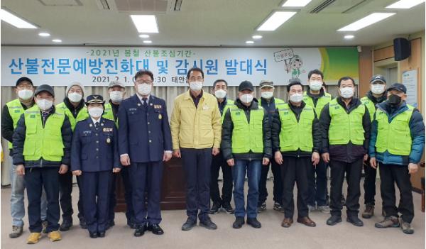 [한국연예축제일보, 유혜경기자] 지난 1일 태안읍행정복지센터 회의실에서 태안읍 관계자, 태안읍 남녀의용소방대장, 산불전문예방진화대원, 산불감시원 등이 모인 가운데 '2021년 봄철 산불전문 예방진화대원 및 감시원 발대식’을 열고 본격적인 산불감시활동에 들어갔다.