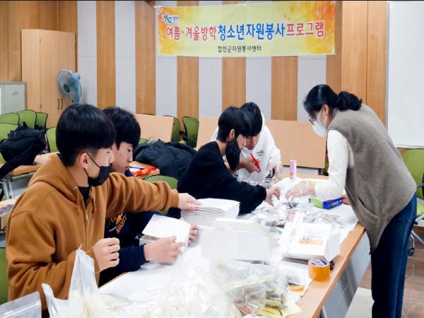 합천군자원봉사센터에서 실시하는 이번 겨울방학 프로그램은 5개의 관내 청소년봉사단이 4인1조 팀으로 구성되어 5일간 한 팀씩 돌아가며 ‘설맞이 사랑의 떡국 밀키트’를 직접 제작하여 관내 지역아동센터의 저소득층 아동에게 배부해 주는 것으로 진행한다.