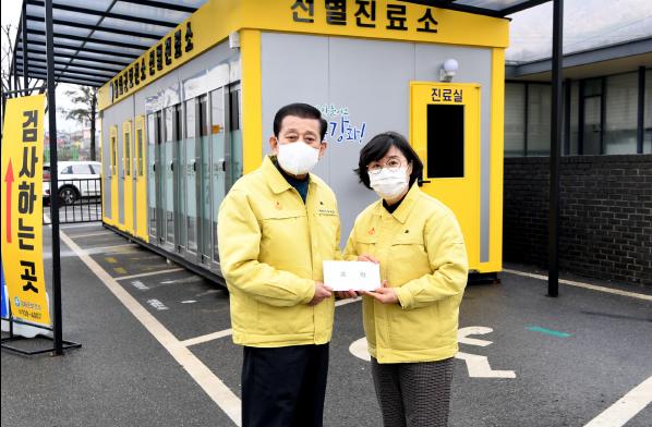 이날 유 군수는 강추위 속에서도 휴일 없이 코로나19 확산방지를 위해 애쓰는 선별진료소 의료진과 역학조사 요원들을 격려하고 노고에 깊은 감사를 전했다.