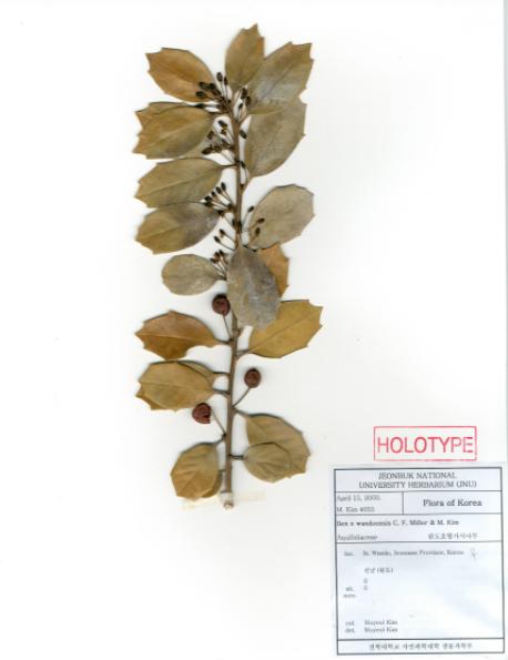 이번에 기증받은 표본은 전북대학교 생명과학과 김무열 교수가 소장한 것으로 한반도 특산식물인 완도호랑가시나무, 위도상사화 등을 포함한 52종 71점의 기준표본이며, 이중 정기준표본은 52점이다.