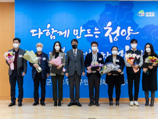 [한국연예축제일보, 유혜경기자] 김돈곤 청양군수가 2일 군청 대회의실에서 복지서비스 향상을 위해 노력한 이춘희 장애인활동지원사와 드림스타트 이은순 아동통합사례관리사에게 표창패를 전달했다.