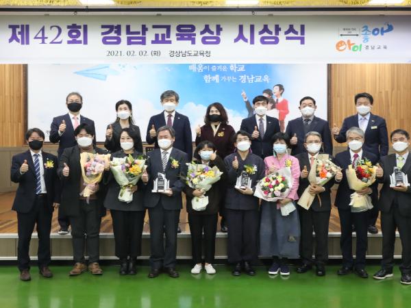 시상식에는 송순호 도의회 교육위원장, 수상자 소속 교육지원청 교육장, 경남교직단체, 경남교육삼락회, 수상자 가족과 본청 직원 등 40여 명이 참석해 축하했다.