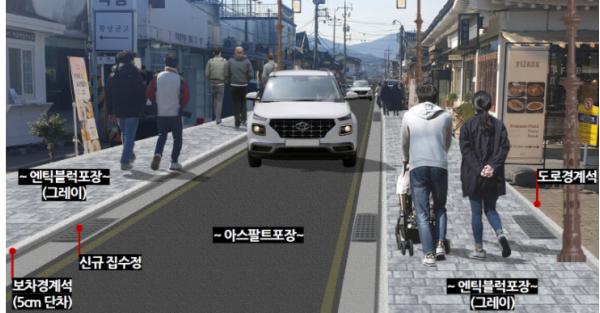 기존 2차선에서 1차선으로 차로를 줄이고 차량 통행을 일방통행으로 제한하는 대신, 보행로 폭을 최대 6m까지 확대한다.