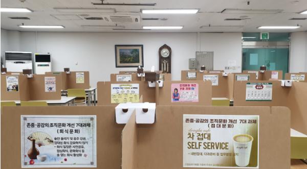 [한국연예축제일보, 서병진기자] 인천동부교육지원청은 직원 식당 비말 차단용 가림막에 ‘존중·공감의 조직문화 조성을 위한 7대 과제’를 부착하였다.