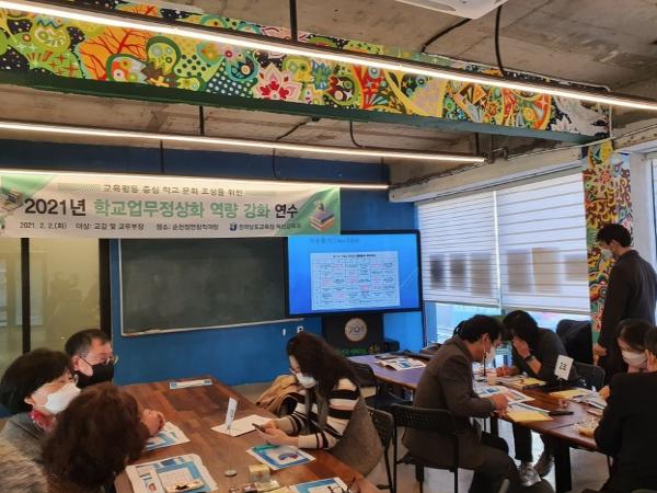 전라남도교육청은은 2월 2일 순천청소년수련관과 장안창작마을에서 초?중학교 교감과 교무부장을 대상으로 ‘2021. 교육활동 중심 학교업무정상화 역량 강화 연수’를 실시했다.