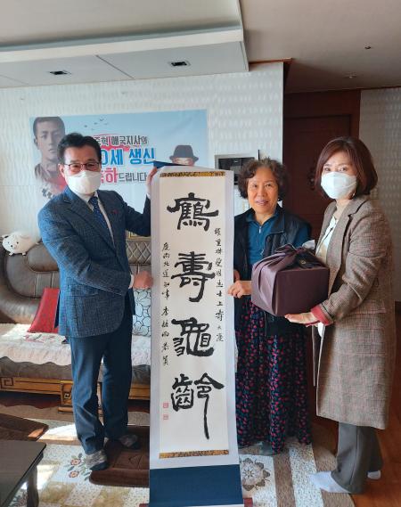 경상북도는 100세 생일을 맞이하는 권중혁 지사의 장수를 기원하는 ‘학수구령(鶴壽龜齡)’의 메시지를 족자에 담아 전달하였으며, 장병하 지사에게도 다가오는 설을 맞아 건강을 기원하며 위문하였다.
