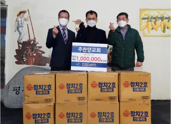 [한국연예축제일보, 유혜경기자] 광주 주찬양교회(목사 이상진)가 2일 설 명절을 맞아 취약가정을 위해 광산구 평동 행정복지센터에 100만원 상당의 참치세트 50개를 기부했다.