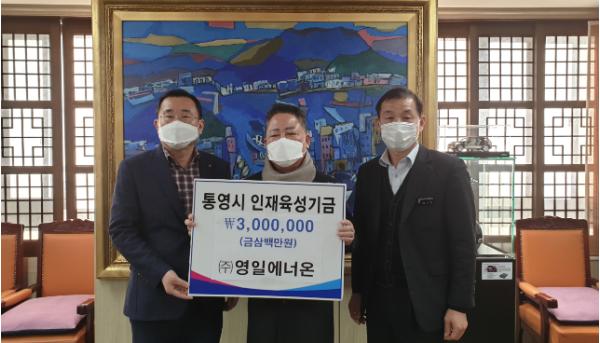 [한국연예축제일보, 유혜경기자] 통영시 도산면 소재 영일에너온(대표 김재도)은 오늘 2월 2일 설날 명절을 앞두고 통영시청을 방문하여 통영시 인재육성을 위해 써 달라며 인재육성기금 300만원을 기탁하였다.