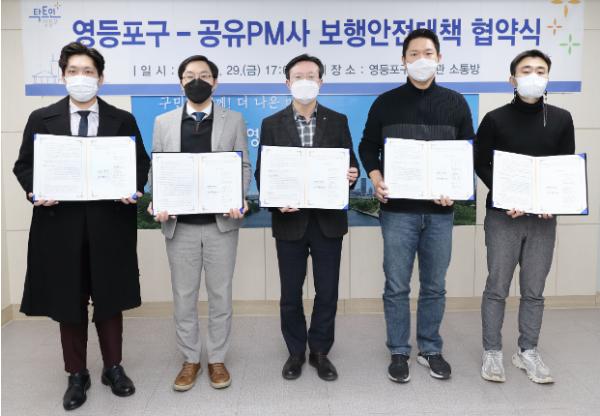 [한국연예축제일보, 유혜경기자] 영등포구가 지난 29일 공유 퍼스널 모빌리티(PM) 4개회사와 보행안전대책 강구를 위한 업무협약(MOU)을 체결했다.