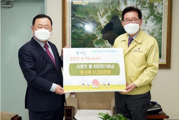 이날 오전 동대문구사회복지협의회는 설 명절을 앞두고 나눔으로 이웃 사랑을 실천하기 위해 상주 삼백쌀 10kg 400포(환가액 1,120만 원)를 동대문구에 전달했다.