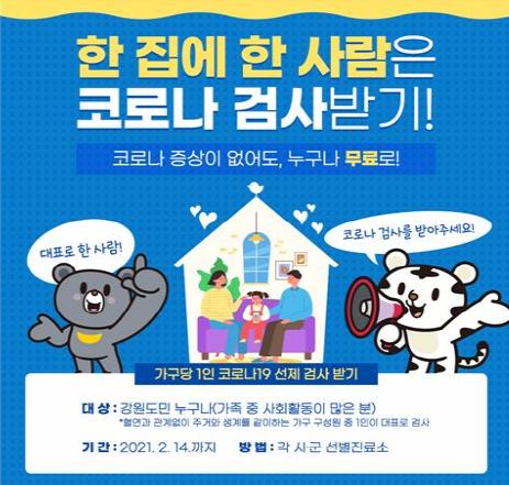 [한국연예축제일보, 한진우기자] 태백시는 코로나19 사전 예방을 위해 오는 3일부터 10일까지 ‘한 집 한 사람 검사받기’ 캠페인을 추진한다.