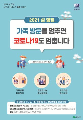 [한국연예축제일보, 유혜경기자] 강북구가 설 명절 기간 동안 신종 코로나바이러스 감염증(코로나19)의 확산을 방지하기 위해 ‘사회적 거리두기 동참 캠페인’에 적극적으로 나섰다.