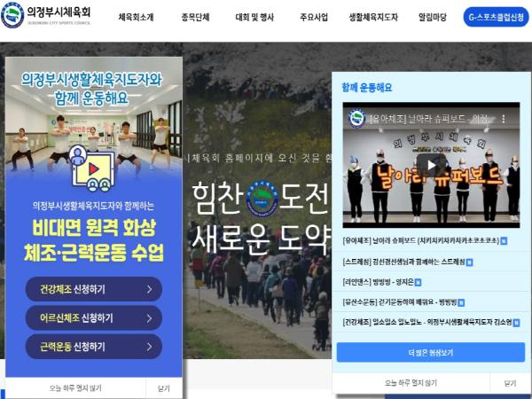[한국연예축제일보, 유혜경기자] 의정부시는 시민들의 체력 증진을 위해서 온라인 생활체육 홈트레이닝 영상 제공과 함께 비대면 화상수업(Zoom 앱 활용)을 운영한다.