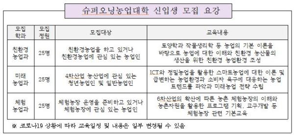 [한국연예축제일보, 유혜경기자] 평택시는 오는 26일까지 농업기술센터에서 운영하는 「슈퍼오닝농업대학」 2021학년도 신입생을 모집한다고 밝혔다.