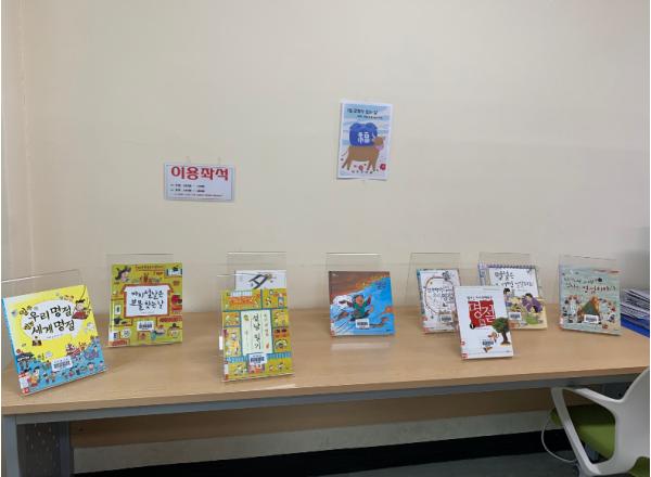 도서 전시는 종합자료실에서 매월 다른 주제로 선정 운영하고 있으며 누구나 자유롭게 전시 도서를 볼 수 있다.