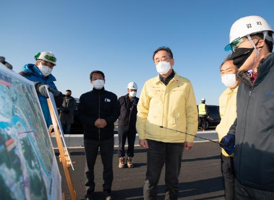 [한국연예축제일보, 유혜경기자] 구미시는 2일 오후 금년 6월말 준공을 앞두고 있는 국도 33호선 국도대체 우회도로(구포∼생곡1) 건설현장을 방문했다. 이 자리에서 현장 관계자로부터 공사 세부사항을 보고받고 양호대교, 옥계지하차도 등 시설물을 점검하며, “겨울철 추운 날씨에 어려움이 있겠지만 품질관리와 안전사고 예방에 각별히 주의해 달라”고 당부했다.
