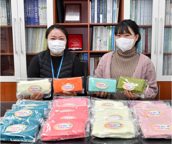 센터에서는 코로나19 장기화로 대면 자원봉사가 위축됨에 따라 자원봉사 활성화를 위해 비대면 프로그램인 ‘사랑실로 엮Go, 따뜻함은 나누Go’를 주제로 지난 1월부터 약 3주간 공개모집을 통한 자원봉사자 70명이 참여해 수면사를 이용한 부드럽고 따뜻한 목도리 250개를 만들었다.