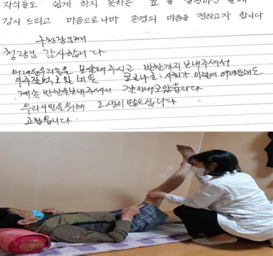 이렇듯 서비스를 받은 어르신과 가족들은 이따금 고마운 마음과 만족감을 직접 적은 손편지를 전하기도 하여 훈훈한 광경을 연출하였다.