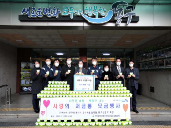[한국연예축제일보, 유혜경기자] 인천광역시 동구는 지난해 12월 10일부터 지난달 하순까지 약 2개월에 걸쳐 진행된 ‘사랑의 저금통 기부금’ 모금 캠페인을 통해 모인 성금을 지난 2일 인천시 사회복지공동모금회 측에 전달했다. 모인 성금은 취약계층 지원사업에 사용될 예정이다.