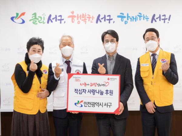 [한국연예축제일보, 유혜경기자] 인천광역시 서구는 지난 2일 소외계층을 위한 따뜻한 마음을 담아 대한적십자사 인천지사에 적십자 특별회비 200만 원을 전달했다.