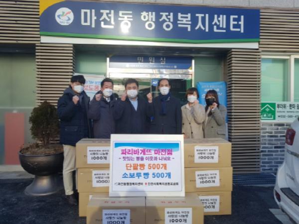 [한국연예축제일보, 유혜경기자] 인천광역시 서구는 파리바게뜨 마전점에서 지난 2일 민족의 명절인 설을 맞이해 단팥빵 등 약 110만 원 상당의 맛있는 빵을 마전동 행정복지센터에 전달했다고 밝혔다.