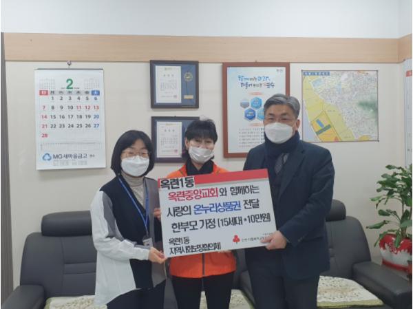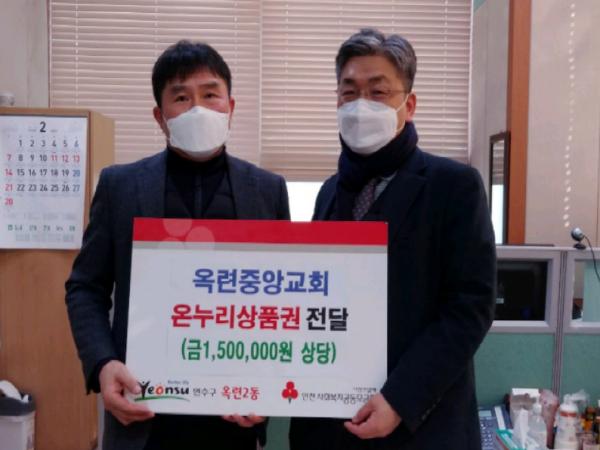 [한국연예축제일보, 유혜경기자] 인천광역시 연수구 옥련동에 위치한 옥련중앙교회는 지난 2일 지역 저소득 한부모가정을 위한 150만원 상당의 온누리상품권을 옥련1동과 옥련2동 지역사회보장협의체에 각각 기탁했다.