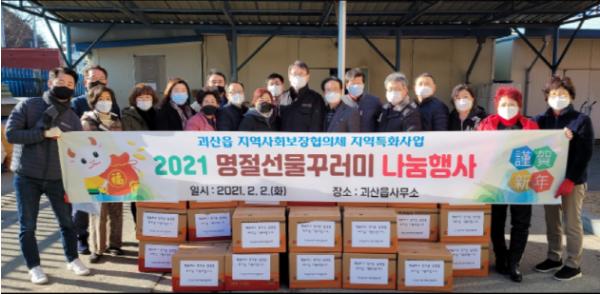 [한국연예축제일보, 유혜경기자] 괴산군 괴산읍지역사회보장협의체가 지난 2일 괴산읍 행정복지센터에서 설명절 선물 꾸러미 나눔 행사를 가졌다.