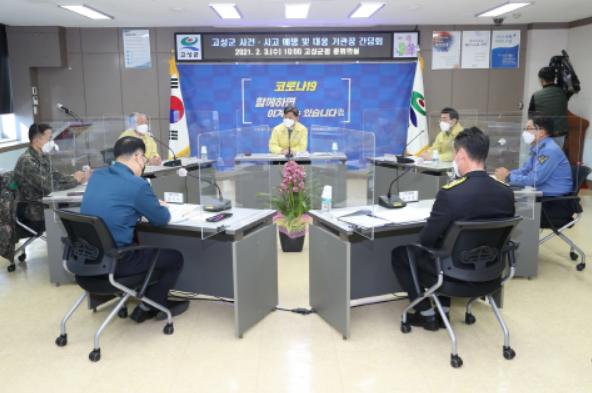 [한국연예축제일보, 이호진기자] 고성군은 2월 3일 고성군청 중회의실에서 군민의 생명과 안전을 최우선으로 생각하는 군정 가치를 담아 지역 유관기관과 함께 ‘사건·사고 예방 및 대응방안 논의를 위한 간담회’를 개최했다.