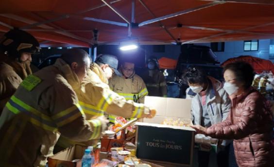 새벽 시간이었지만 화재 소식을 접한 남해군 주부민방위기동대와 의용소방대 연합회 대원들은 한걸음에 화재 현장으로 달려갔으며, 현장 지원을 하는 한편 소방대원들에게 빵과 컵라면 음료 등을 제공했다.