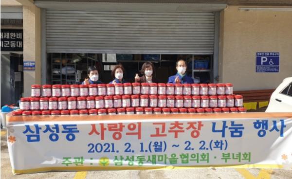 [한국연예축제일보, 유혜경기자] 양산시 삼성동 새마을협의회·부녀회는 지난 2일 삼성동 행정복지센터에서 어려운 이웃을 위한 ‘사랑의 고추장 나눔 행사’를 가졌다.