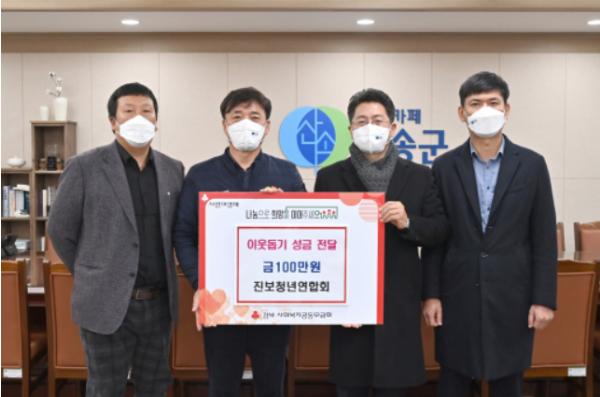 [한국연예축제일보, 유혜경기자] 청송군 진보청년연합회가 지난 28일 코로나19로 인해 특히 어려움을 겪고 있을 저소득 및 취약가정 지원을 위한 이웃돕기 성금 100만원을 청송군에 전달했다.