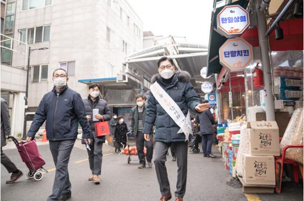 [한국연예축제일보, 유혜경기자] 이정훈 강동구청장이 민족 고유의 명절인 설을 앞두고, 지난 2일 오전 강동구 관내 전통시장을 방문해 코로나19로 어려움을 겪고 있는 시장 상인들을 격려했다.
