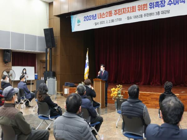 [한국연예축제일보, 유혜경기자] 의왕시 내손2동은 주민자치회로 전환된 이후 주민자치회 위원들의 첫 번째 위촉식을 2일 주민센터 대강당에서 개최했다.