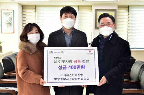 [한국연예축제일보, 유혜경기자] 인천시 부평구는 지난 2월 2일 ㈜비에스아이조명과 부평경찰서경찰발전협의회로부터 설 이웃사랑 나눔 성금 400만 원을 전달받았다.