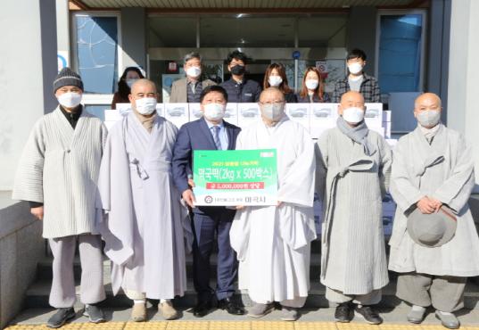 [한국연예축제일보, 유혜경기자] 대한불교조계종 제6교구 마곡사(주지 원경)는 2일 설날을 맞아 금산군청을 방문해 떡국떡 500박스(2kg 포장)를 전달했다.