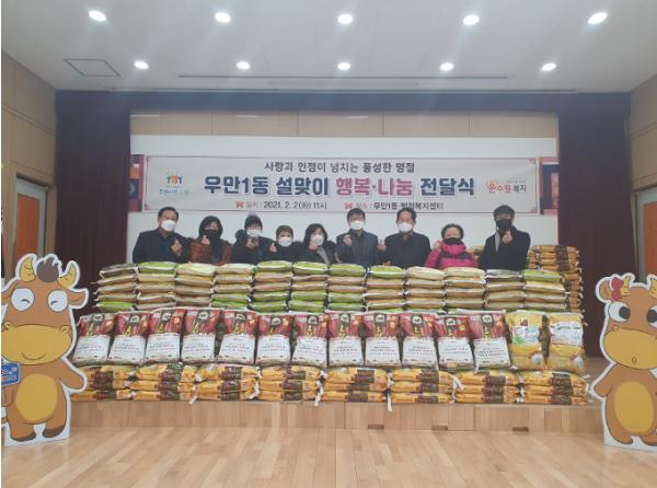 우만1동 이기조 동장은 “관내 어려운 이웃들을 위해 항상 아끼지 않는 관심과 후원을 주시는 단체 회원 분들과 기업 관계자 분들께 감사드린다. 어려운 이웃들이 상대적으로 많은 우만1동인 만큼 추운 겨울 안전하고 따뜻한 설 명절을 보낼 수 있도록 더욱 더 노력하겠다”고 말했다.
