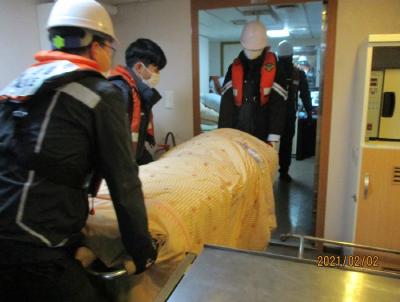 이어 구급차량을 이용해 사동항에 도착한 응급환자와 의사 등 3명을 단정을 이용하여 밤 10시 50분경에 경비함정으로 승선시킨 후, 악천후를 뚫고 묵호항에 입항해 오늘(3일) 새벽 3시 54분경 대기 중이던 구급차량에 환자를 인계하여 대구 경북대병원으로 이송 조치했다.