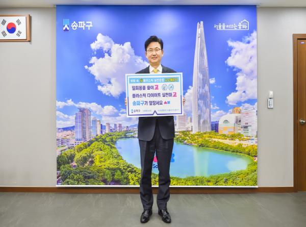 박성수 송파구청장은 ‘일회용품 줄이고! 플라스틱 다이어트 실천하고!’를 생활 속 실천방법으로 약속하고 해당 내용을 구청 사회관계망서비스에 게재했다.