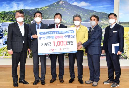 (사)한국농업경영인 경상북도연합회는 회원 수가 약 2만 여명에 달하는 도내 최대의 농업인 단체이다. 1988년에 설립되어 지금까지 일선 농업현장의 목소리를 대변하고 각종 농정시책 개발과 농업인의 삶의 질 향상을 위해 노력하고 있다. 지난해에도 회원들이 2000만원의 성금을 모아 코로나19 극복을 위해 기부했다.