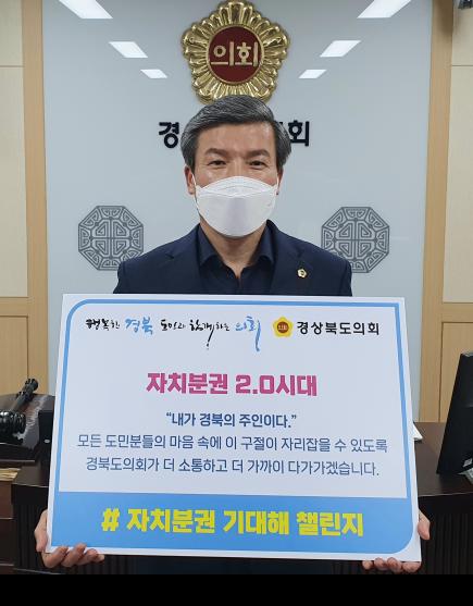 [한국연예축제일보, 변현식기자] 경상북도의회 정영길 의원은 2월 3일 '자치분권 2.0'시대의 시작을 응원하는 '자치분권 기대해' 챌린지에 동참했다.