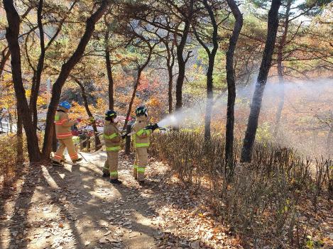 또한 산불 발생 초기 대응능력을 높이기 위해 등산로 주요 입구와 능선부 25개소에 산불진화장비 보관함을 설치했다. 물 공급이 어려운 산림 내에서 소방호스를 신속하게 연결할 수 있도록 고압수관장비보관함 2대도 비치했다.