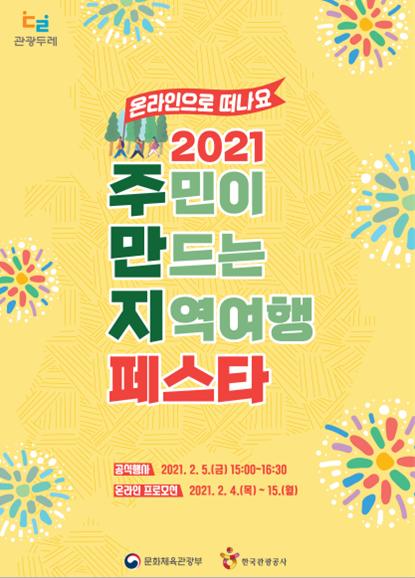 [한국연예축제일보, 김봉락기자] 문화체육관광부는 한국관광공사와 함께 관광두레 우수사례를 공유하고 서로 다른 지역 주민들이 소통하고 교류할 수 있도록 2월 4일부터 15일까지 ‘2021 관광두레 전국대회’를 온라인으로 진행한다.