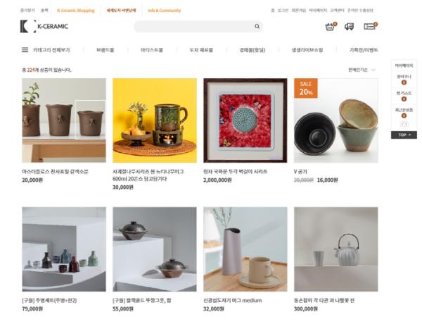 한편, 현재 K-도자기(Ceramic) 쇼핑몰에는 35개 업체가 입점해 도자식기, 소품, 액세서리 등 224개 품목을 판매하고 있다.