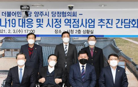 [한국연예축제일보, 유혜경기자] 양주시는 지난 3일 시정 발전을 위한 정책협력을 강화하고 주요 현안사업의 차질없는 추진을 위해 ‘2021년 제1분기 당정협의회’를 개최했다.