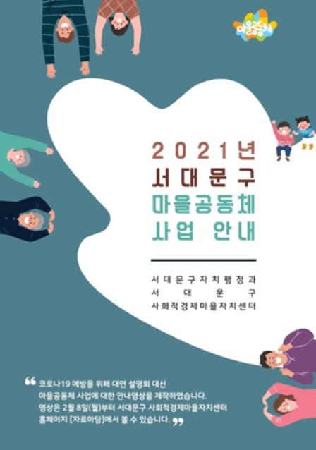 문석진 서대문구청장은 “코로나 시대를 함께 이겨나가기 위해서는 마을공동체가 더욱 절실히 필요하다”며 “이번 영상과 자료집을 통해 더 많은 주민 분들이 어려움을 함께 이겨낼 수 있는 다양한 마을 활동들을 만날 수 있길 바란다”고 말했다.