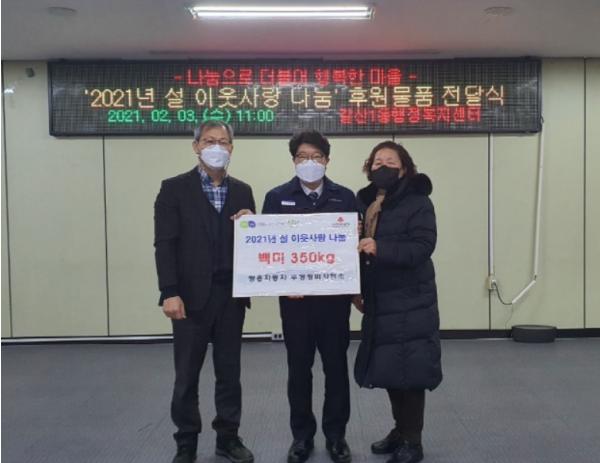 한편, 이번 기탁 받은 쌀은 ‘설 이웃사랑 나눔’ 성품으로 갈산1동 저소득가정에 지원할 예정이다.