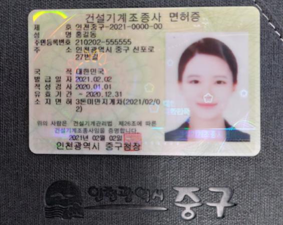[한국연예축제일보, 유혜경기자] 인천광역시 중구는 건설기계조종사면허증을 PVC(플라스틱)카드로 발급해주는 자동발급기를 신규 설치?운영하고 있다고 밝혔다.