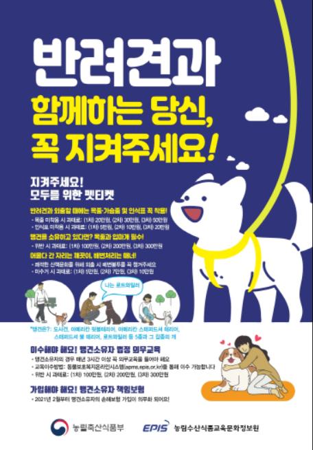 한편, 의령군 관계자는 “법에 명시된 5가지 품종의 맹견은 크기와 무관하게 책임보험에 가입해야 하며, 책임감 있는 반려문화를 조성하기 위해 맹견의 소유자는 꼭 맹견 책임보험에 가입하시길 바란다.”라고 당부했다.
