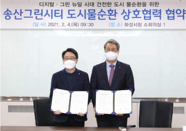 또한 송산그린시티 산업단지, 골프장 및 주운수로 등 도시조성과 연계한 물재이용사업 등 도시 물순환 사업화 모델을 발굴하고 화성형 그린뉴딜 성공을 위한 R&D 공동 연구개발 및 기술교류에 힘을 쏟기로 했다.
